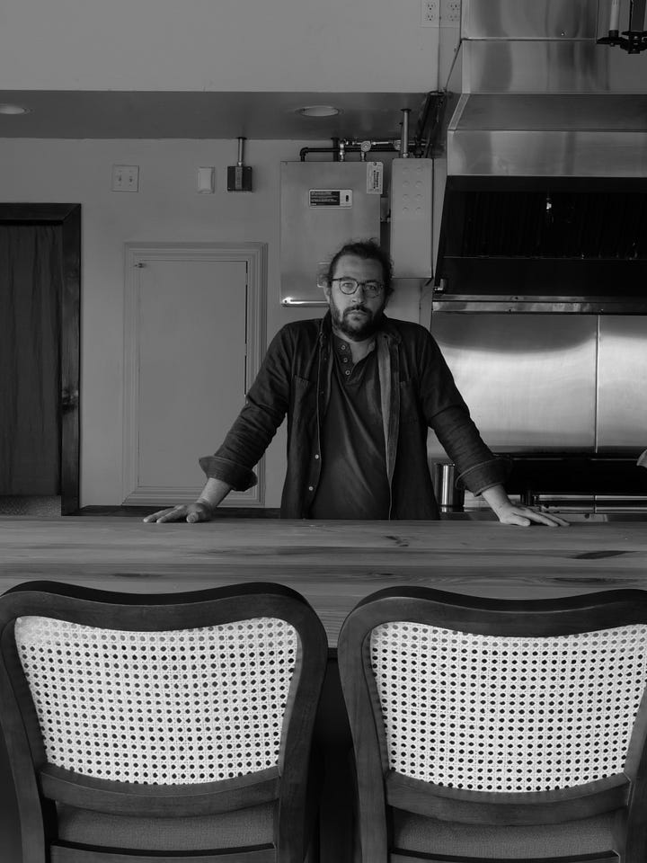 I’m breathing in. I’m breathing out. Cacophony of laying hens enters my open shed door. And the midday sun gowns the overgrown juniper that scratches the door and gentle spring air wafts scents of the pine. Fragrance quintessential… there are few pleasures like it I breathe in I know the time I feel the place I breathe out Papa? Papa! My girls have returned from their morning fun and they have seen my truck in the drive they’ve noticed the open back door they run through it and search for me in the yard and are surprised to find me here. Yes I’m usually somewhere else but there are undigested thoughts swollen yes yes swollen and heavy I carry them with me wherever I go and I’d like to set them down and… my littlest is holding dollar store flowers Papa! Papa! and she hands them to me and Mama says she saw them and wanted to get them for you… she kept pointing at them and saying “Papa, Papa” and I accept this gift and my littlest runs along in her blue floral dress and bouncing curls her bare feet pattering on soft green grass they are setting up the picnic table in the shade beneath the weeping cherry for arts and crafts and it isn’t that I’m depressed—oh the shock!—no it isn’t that it’s something in the what am I here to do?... searching searching and it’s easy to lose myself in the process of creating this restaurant and I have lost myself in the process of creating this restaurant the thoughts the searching thoughts become tangled like my hair that I’ve put up for too long. Yes a tangling inside of me and I reach for the German artist Anselm Kiefer who’s always untangling untangling and it isn’t a restaurant it isn’t a writer’s retreat it isn’t whatever anyone says no it’s an infinity of tangled thoughts being untangled. A laboratory of soul. A rising to face my demons. And yes I will allow into this tangled space the luxury of caviar the fleeting deliciousness of ramps and morels and I crack the eggs just collected still warm with life into the freshly milled flour and I mix. I fold. I kneed. I set aside. To be rolled and cut and shaped. Spring ravioli. And the cooking—that craft—is one part of this evolving story one small gigantic piece. I’m looking to satisfy something inside myself. I don’t know what that something is. I write the words. I take the photograph. I collect the meadow grasses and the dead but not dead bones of Queen Anne’s lace yes those radiating rods shriveled up in some quiet corner grasping all. I knead the dough. I butcher the fish. I light the fire and it burns all. There’s an energy there in the blazing wood. Immediate. And it goes into me. It travels into the food. And I pass it through to you. And it radiates, leaving me.